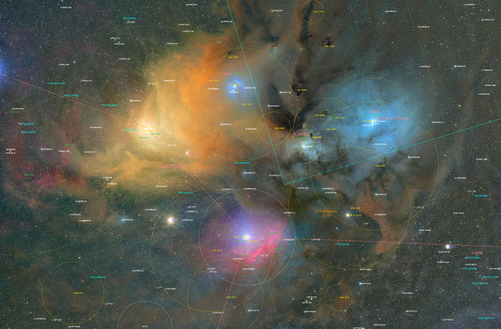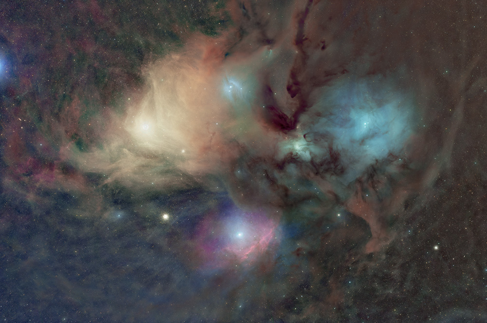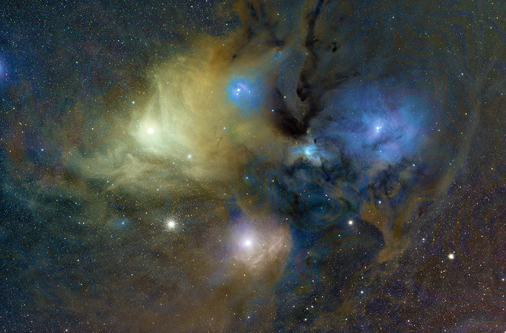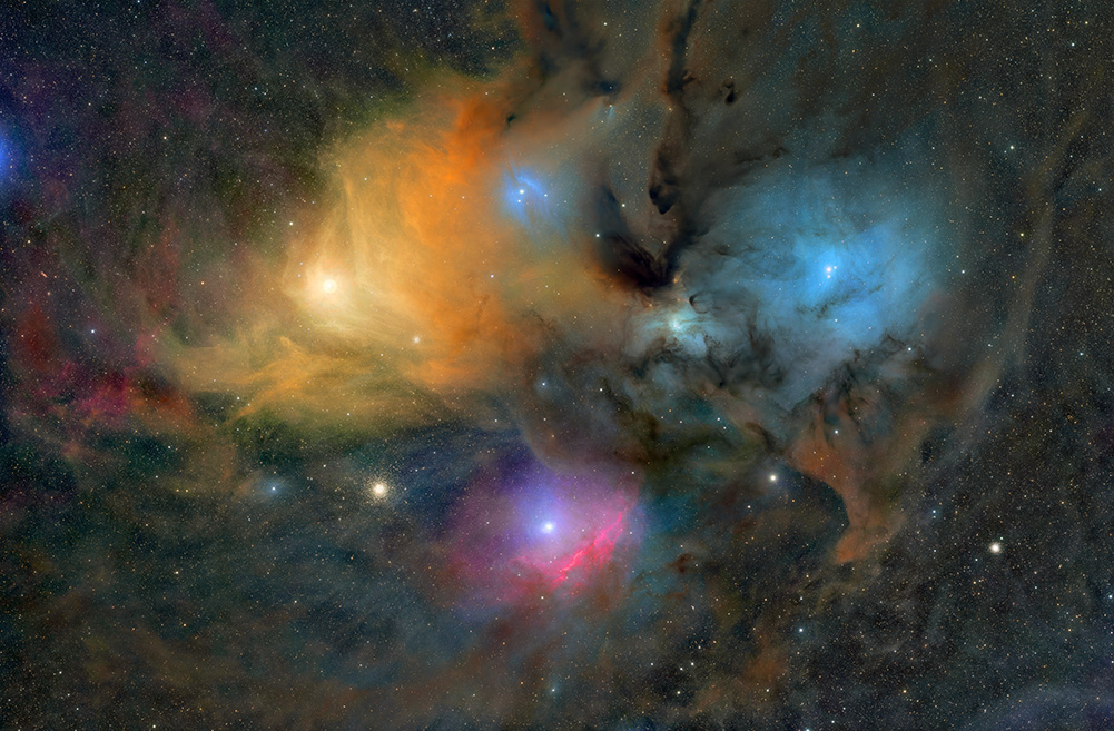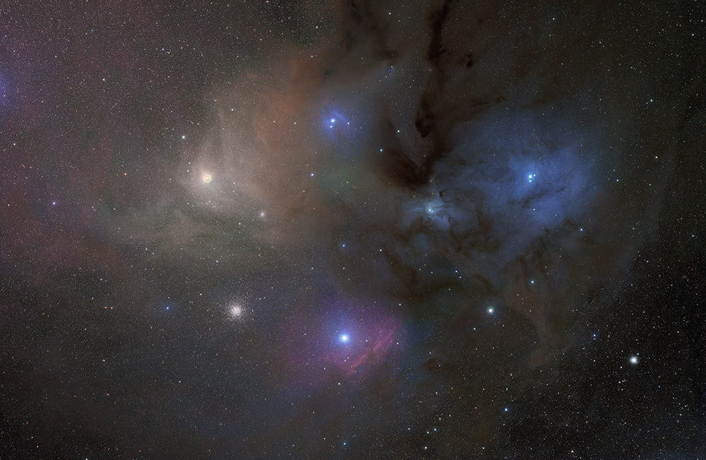 Ophiuchi a donné son nom au nuage de Rho Ophiuchi. C'est une nébuleuse faite de gaz et de poussières, au sein de laquelle le système de Rho Ophiuchi est compris. C'est l'une des régions de formation stellaire les plus faciles à observer, visible des deux hémisphères, et c'est également l'une des plus proches du système solaire.