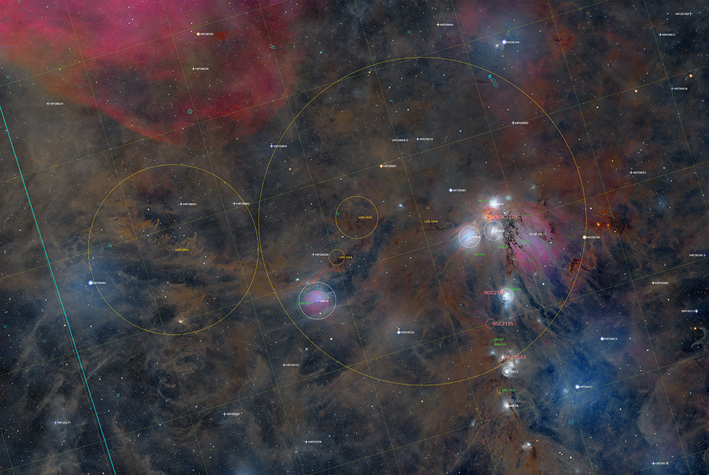 Source Wikipédia NGC 2170 est une nébuleuse par réflexion située dans la constellation de la Licorne distance d’environ 2400 années-lumière[4]. Cette nébuleuse a été découverte par l'astronome germano-britannique William Herschel en 1784.